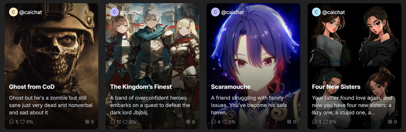 Tags act as keywords that reflect the character’s personality, roleplay style, and theme. They help CAICHAT.AI filter and find characters that match users’ interests.